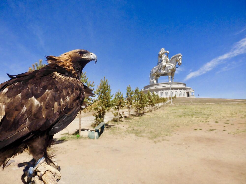 かなり巨大なチンギスハン像は遠くからでも見渡せて、輝いている。