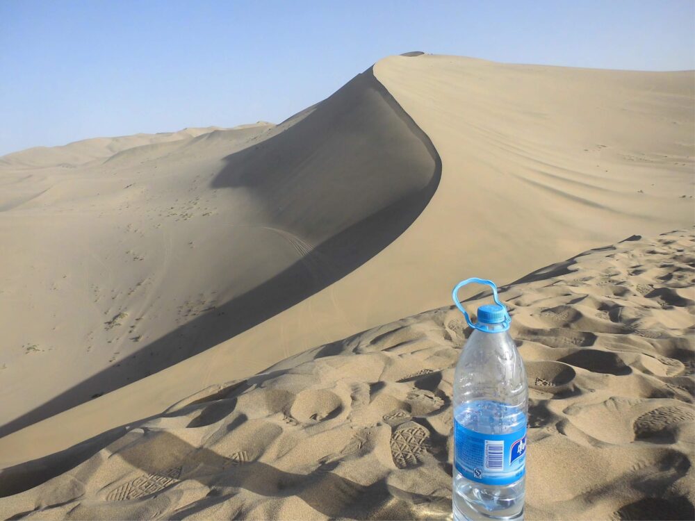 水が一気にお湯になった。砂に足を奪われて体力も奪われる。何回も休憩しながらなんとか丘の上に登るけどあの景色は見えない。