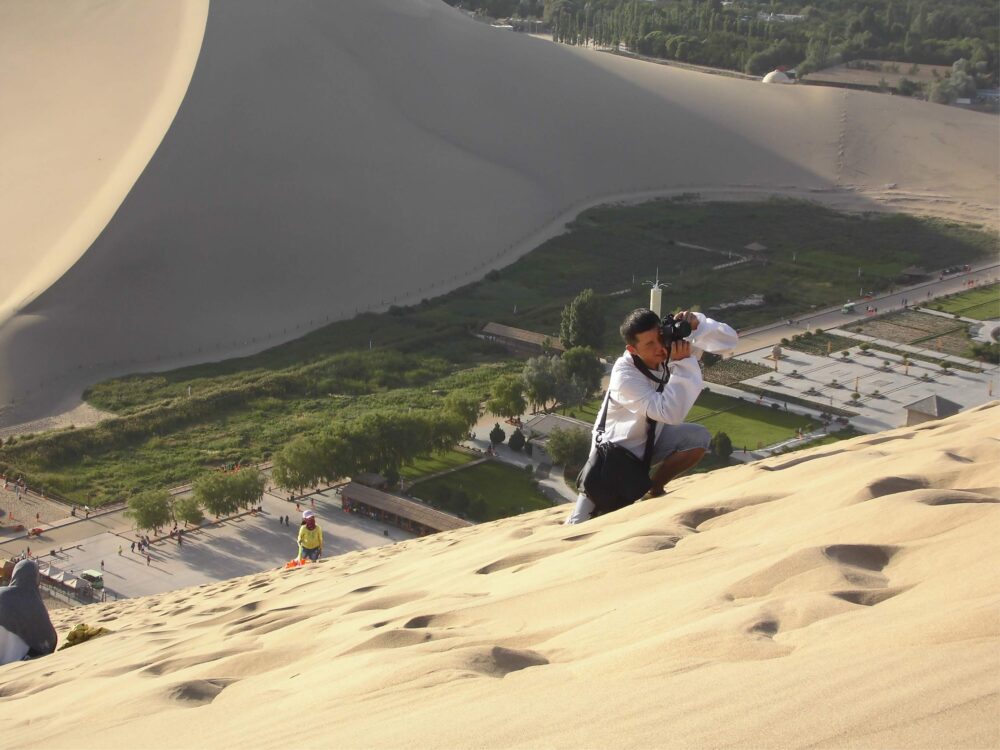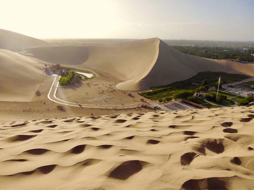 バスを降りた辺りから既に砂漠が見えてて、この時点で莫高窟よりいいと思った。