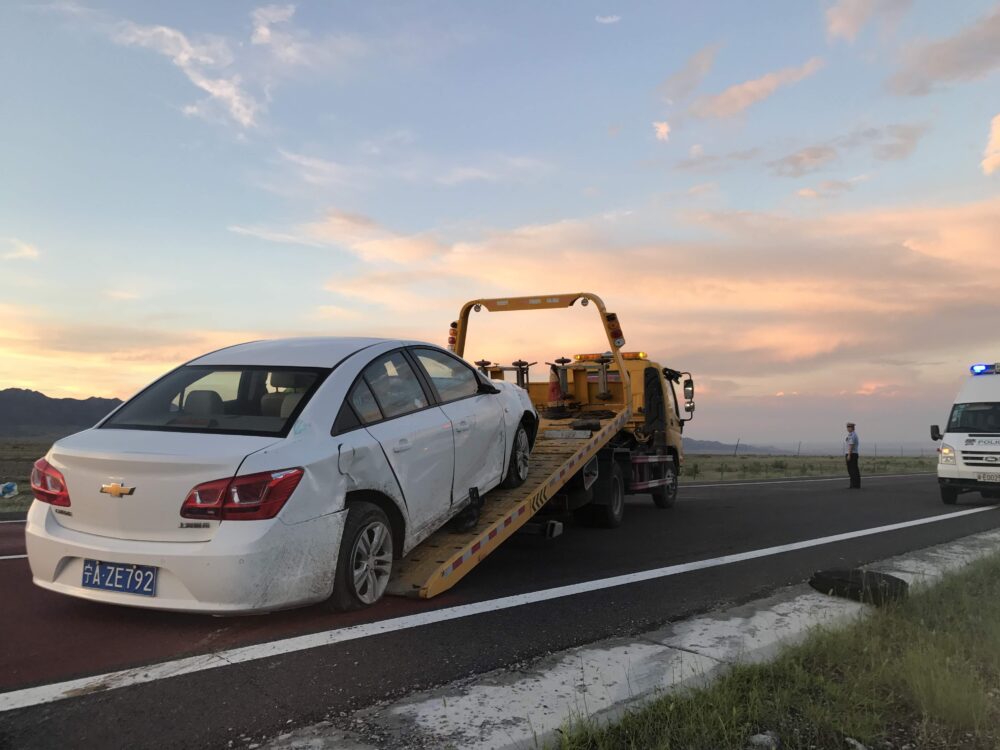 それから2人が色んな所に電話かけたりしたりして、しばらくしてまず警察が来て、それからまたしばらくしてレッカー車がきて車を起こしてくれた。