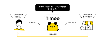 「タイミー」は、スキマ時間で働きたい人と、ある時間だけ人手を欲しい企業・店舗・施設をつなぐマッチング型のバイトアプリのこと。